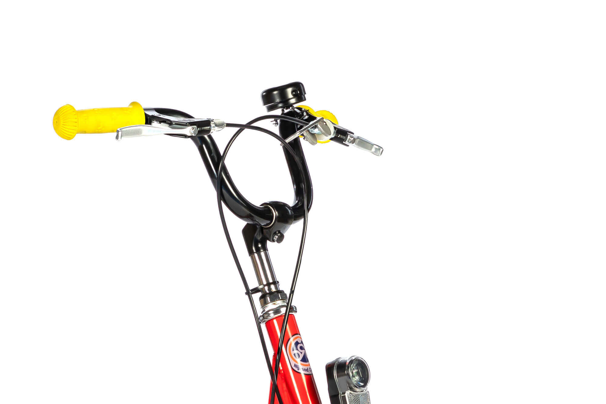 Bruker sykler ved å trå framover. Når bruker trår bakover skjer det ikke noe. Fri nav er gunstig for å kunne stille inn optimal ”start-posisjon” for pedalene slik at det er enklest mulig å sette sykkelen i gang. Pedalene står i ro i utforbakker. Sykkelen har to håndbremser, en for forhjul og en for bakhjul.