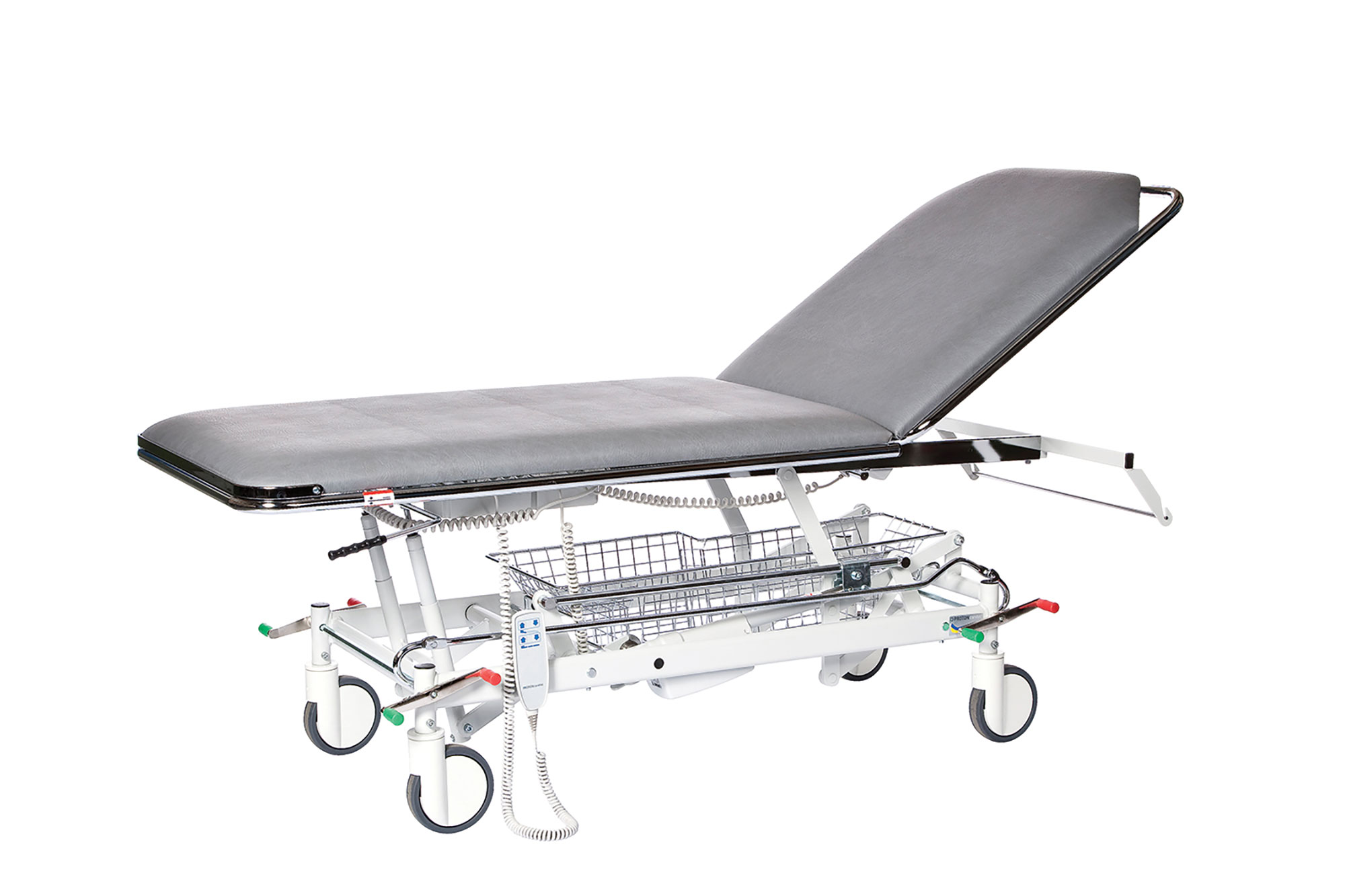 Velg mellom hydrauliske og elektriske funksjoner på rygg – hev og senk og manuelt sjokkleie. Velg mellom hjul med individuelle bremser eller sentralbrems. Velg mellom fotpedal og håndkontroll på elektriske funksjoner.