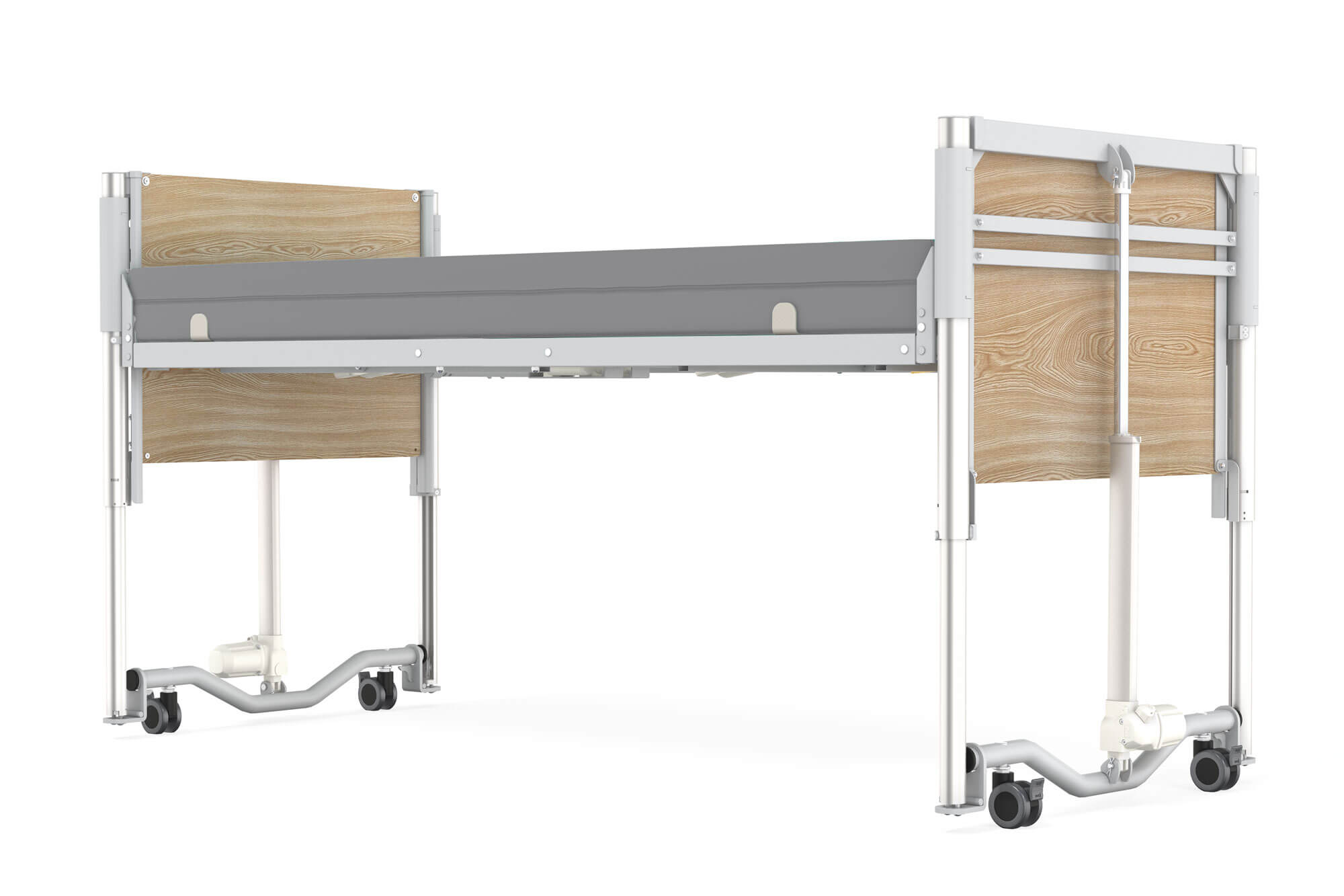 Ved å heve liggeflaten opp i øverste posisjon oppnås en svært god arbeidshøyde for pleiepersonell.