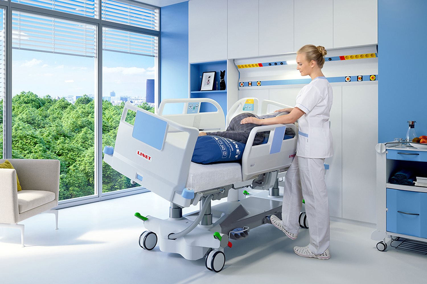 Sunrise Medical leverer standard sykehussenger, intensivsenger, sykehjemssenger og sykehussenger til barn fra produsentene Caretec og Linet.