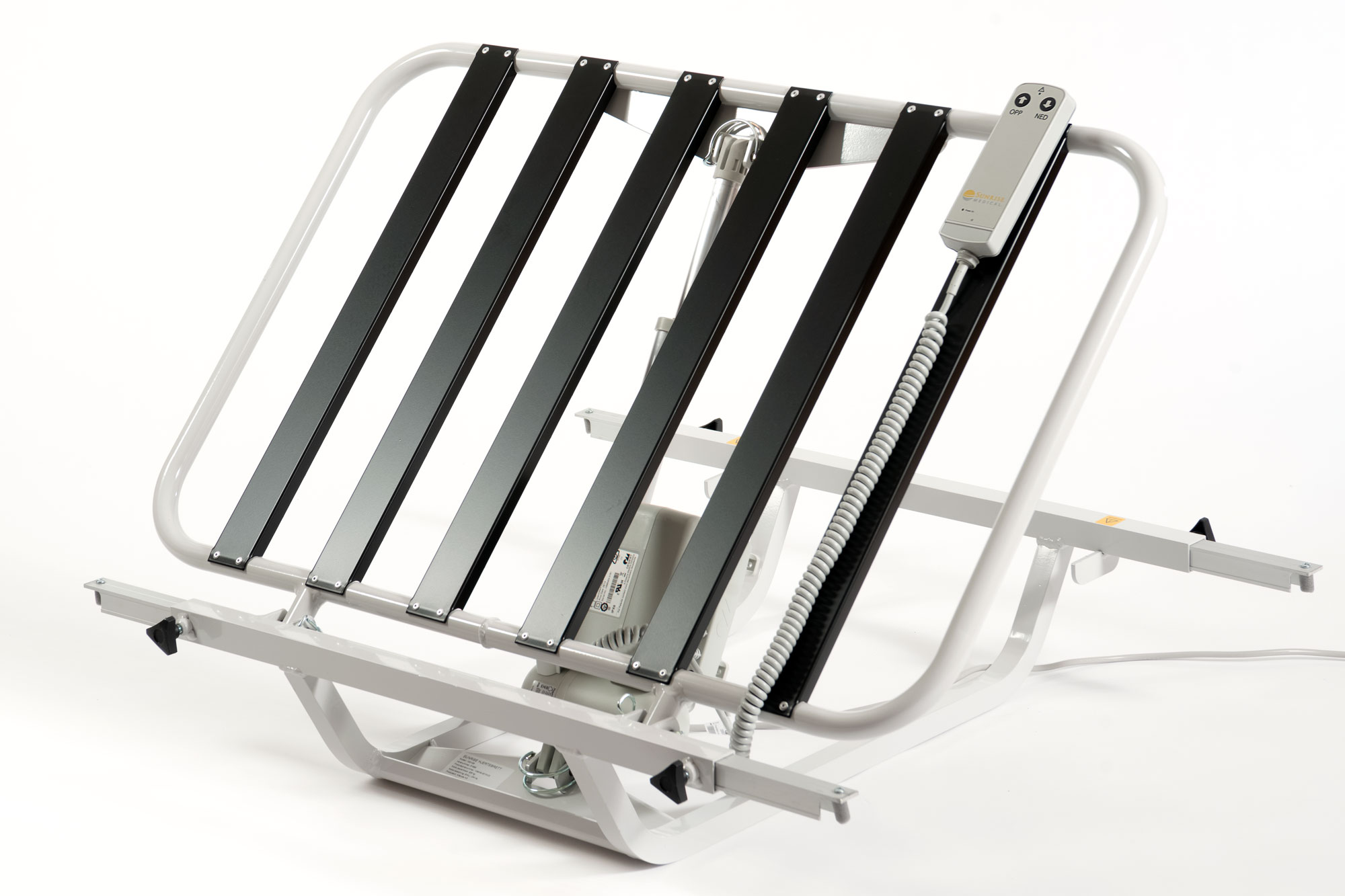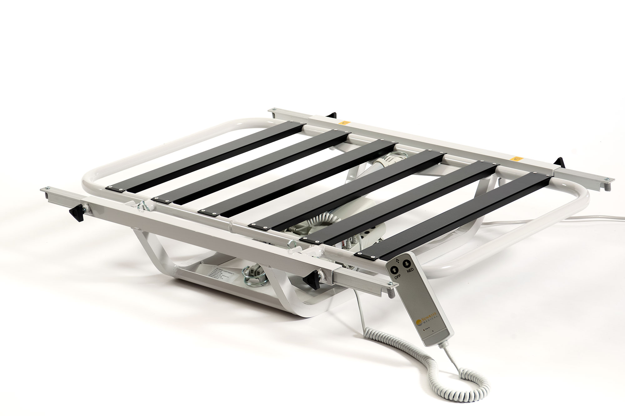 Det er enkelt å montere og monteringsanvisning følger produktet. Det betjenes med en svært enkel håndkontroll, opp og ned.Produktet vil ikke bygge høyde i sengen når helt nede. På grunn av langsgående spiler vil ikke hjertebrettet slite unødig på madrassen når den kjøres opp og ned. Produktet krever strøm.