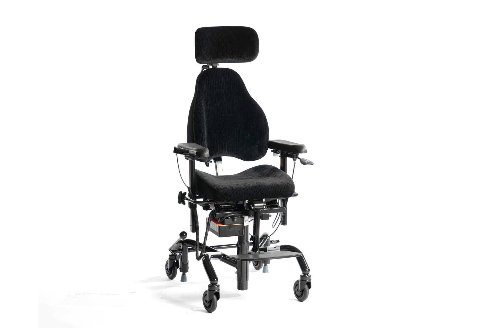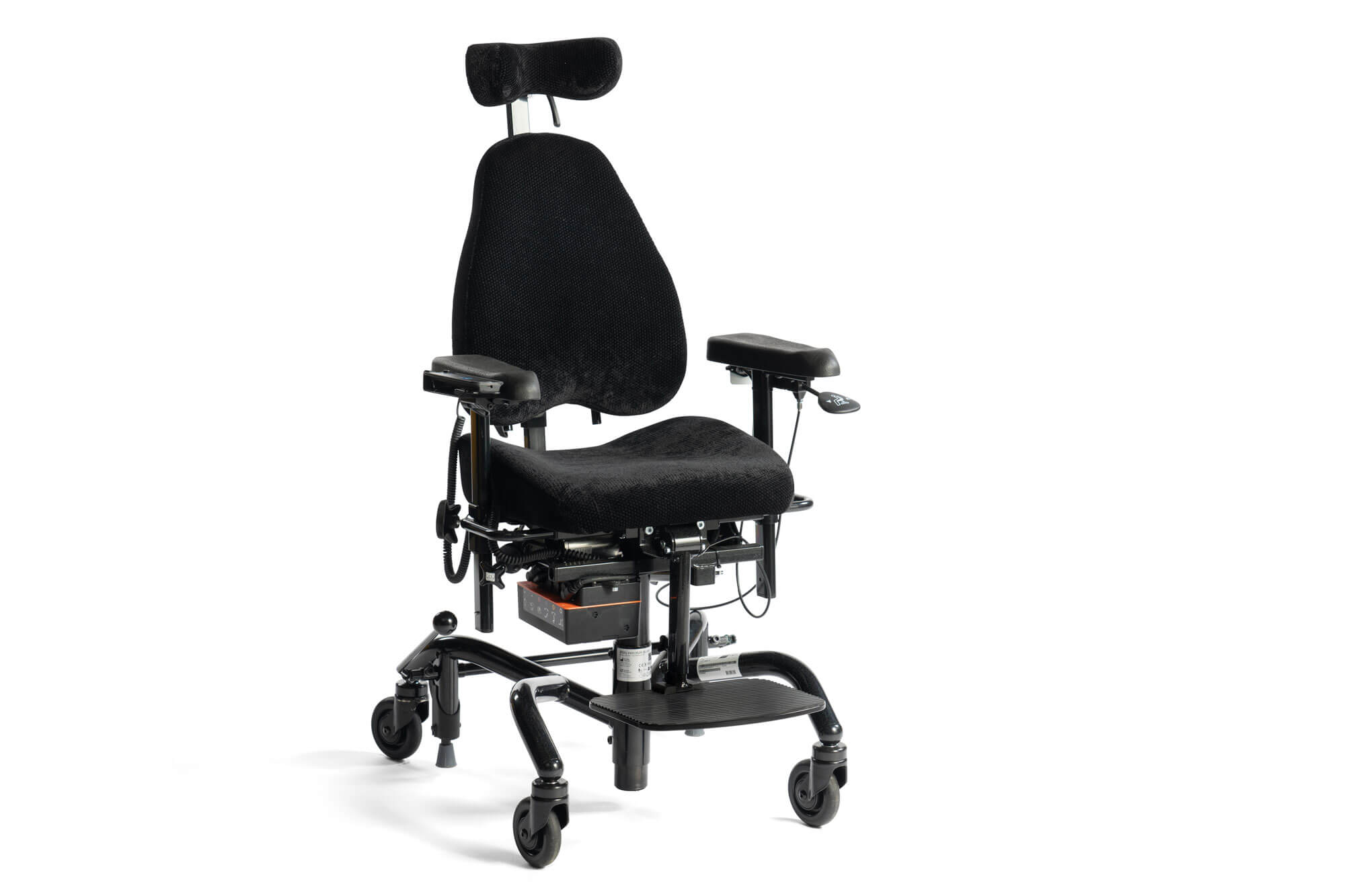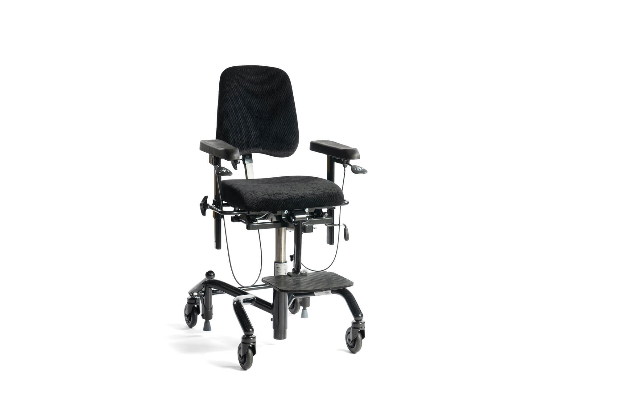 Real 9300 Plus / Real 9400 Plus El 24V (aktiv) har hev og senk og setetilt i 15° forover og 15° bakover. Disse stolene er konfigurert med lav rygg og liten grad av støtte, noe som gir god bevegelsesfrihet og passer godt til aktive personer. En meget stabil brems mot gulv gir stolen større sikkerhet mot velt og mindre slitasje på hjulene. Ergomedic sete og rygg med ryggvinkling. Medic for fast eller fri ryggbevegelse. Ergomedic sittesystem kan vokse med barnet og tilpasser stolen etter endrede behov for stabilitet, aktivitet og hvile.