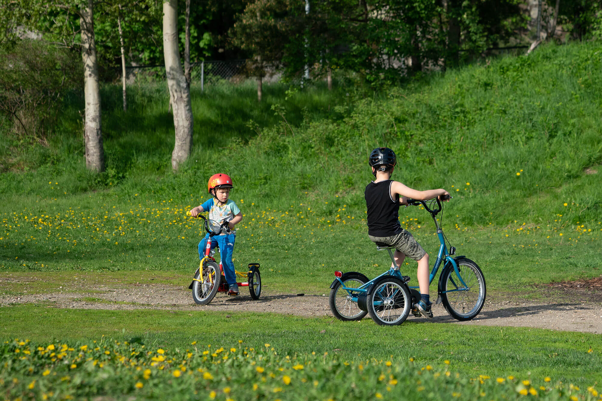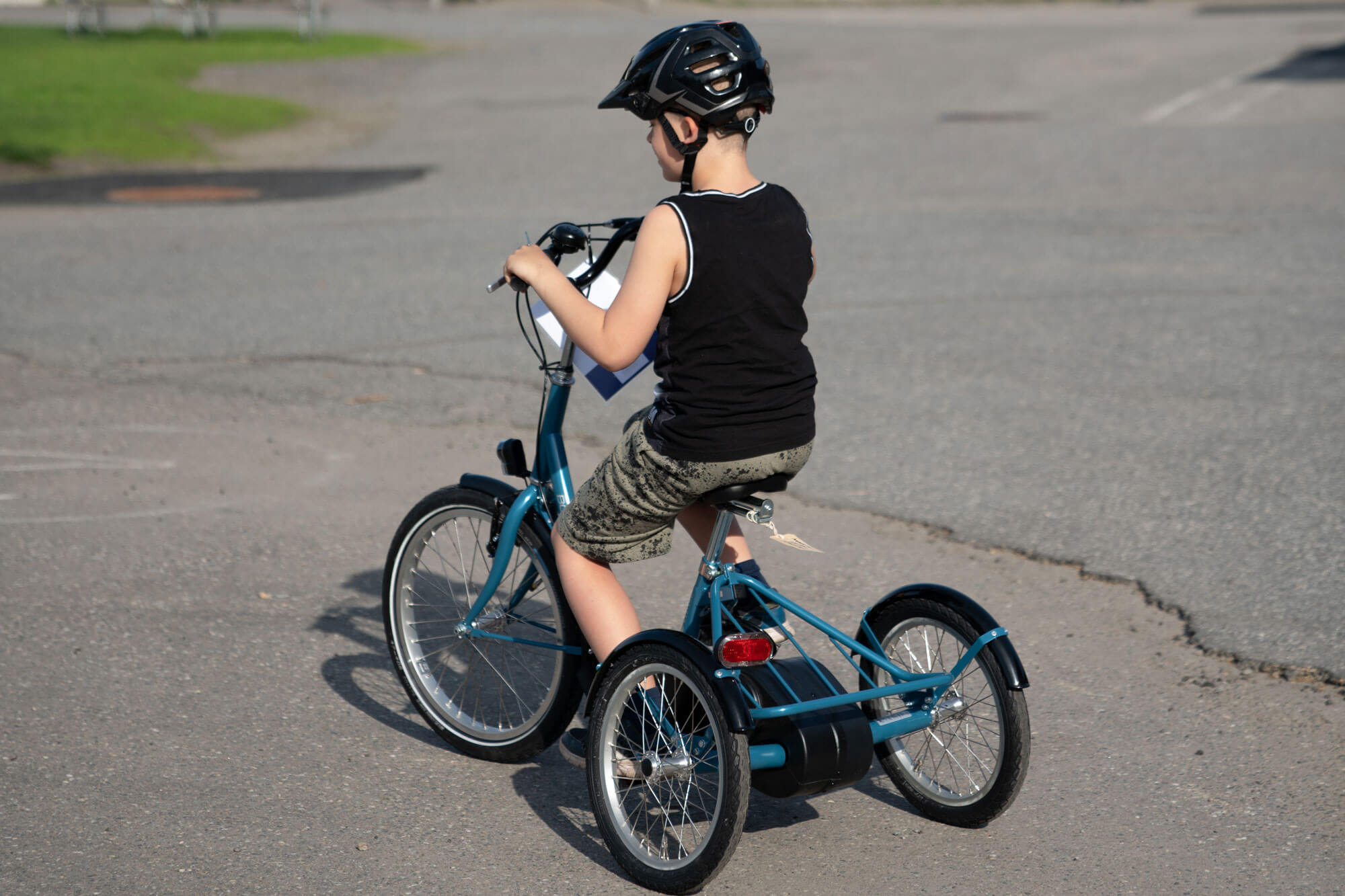 Lavt tyngdepunkt og cambring av bakhjulene gjør sykkelen stabil og trygg. Mindre bakhjul enn forhjul bidrar til ytterligere sikkerhet.