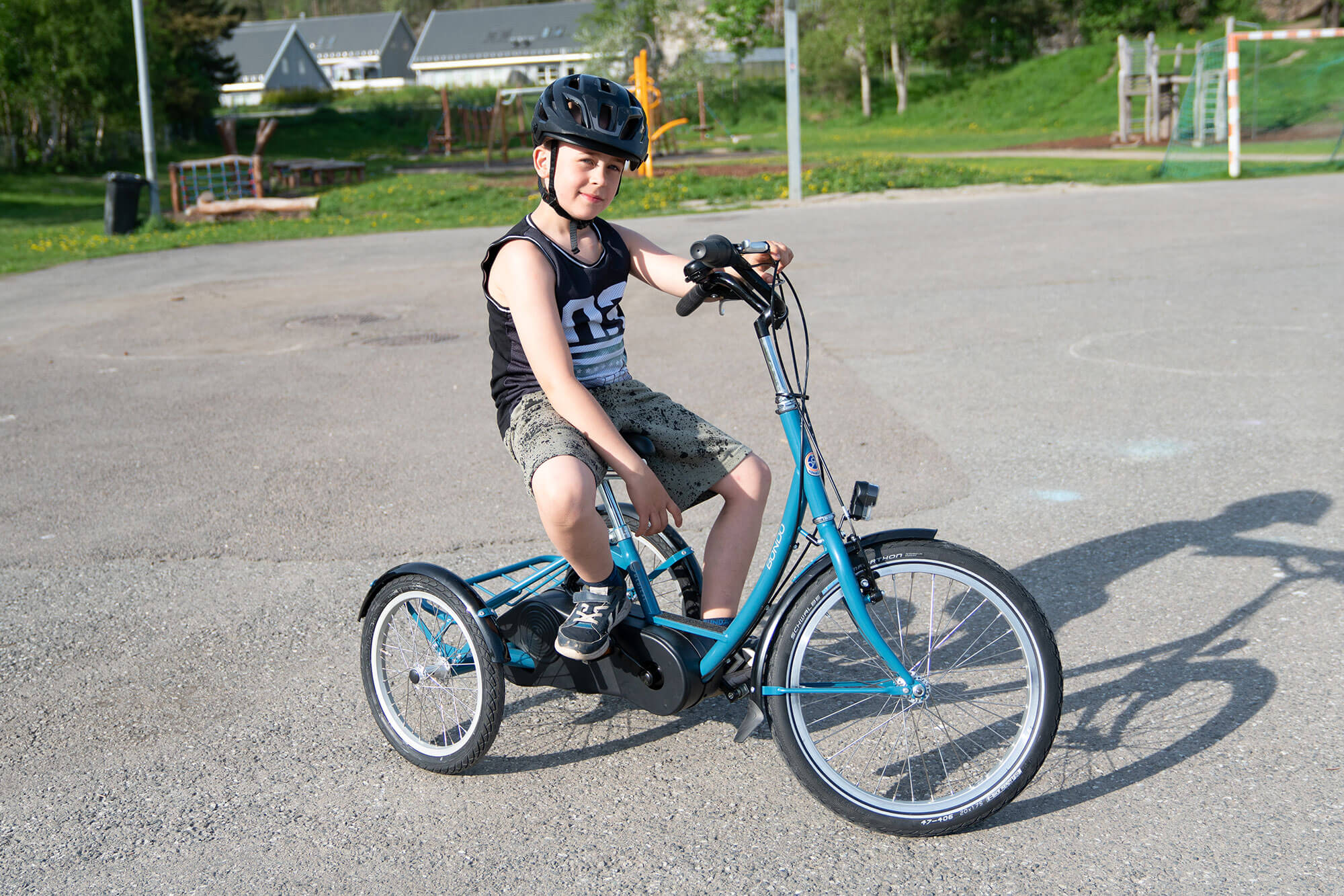 Bondo er sykkelen for barn i skolealder. Den leveres i tre utgaver, fast nav med ledsagerstyring (LS), pedalbrems med 7 gir eller fri nav med 7 gir. Bondo har mye utstyr som standard. Sammen med et bredt utvalg av tilbehør vil sykkelen kunne tilpasses de fleste behov. Lavt tyngdepunkt, cambring av bakhjulene og differensial gjør sykkelen stabil og trygg. Ser du etter Bondo med hjelpemotor, kan du lese om den her.
