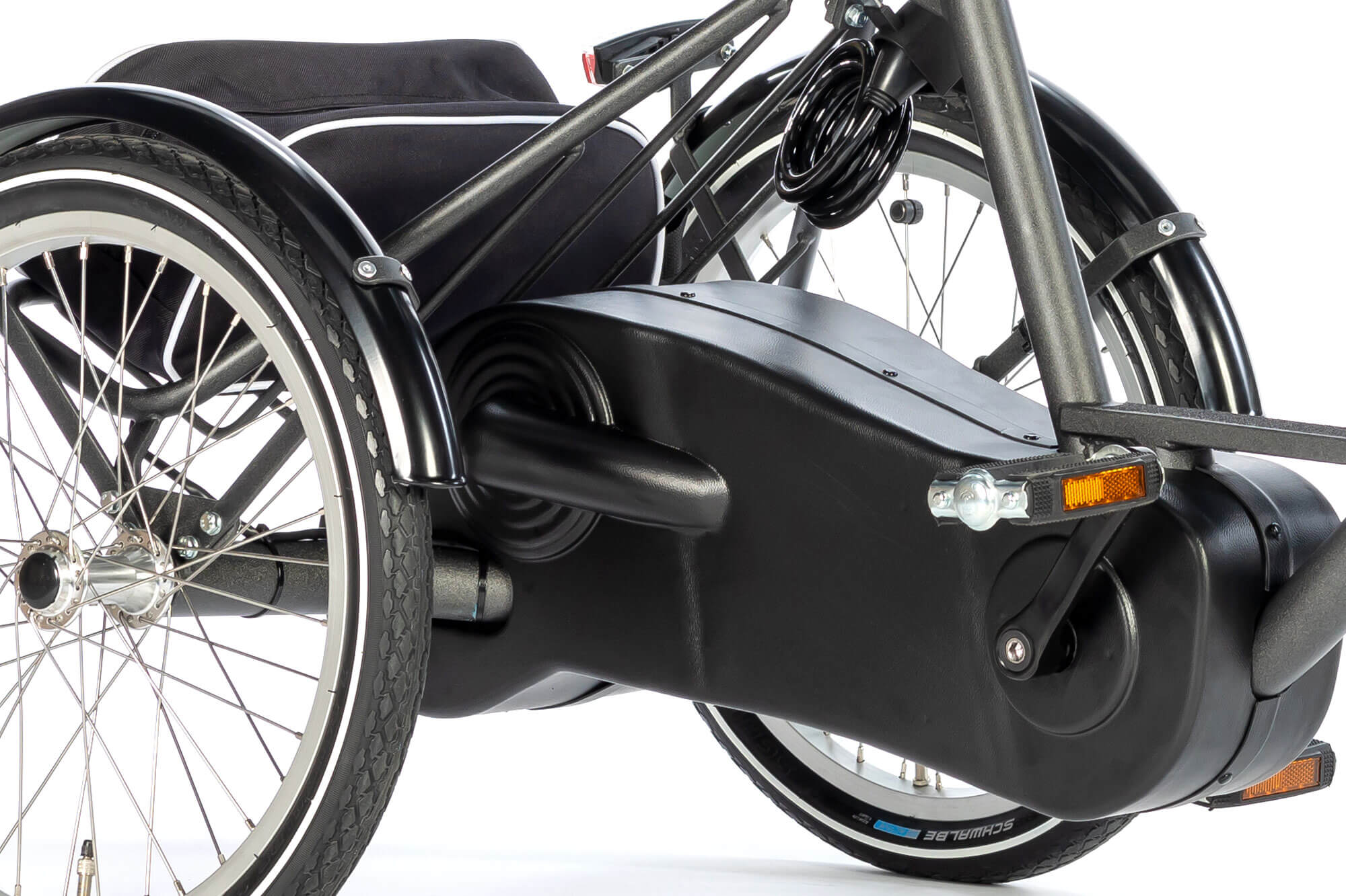 • Lavt tyngdepunkt og cambring av bakhjulene gjør sykkelen stabil og trygg. Minde bakhjul enn forhjul bidrar til ytterligere sikkerhet.