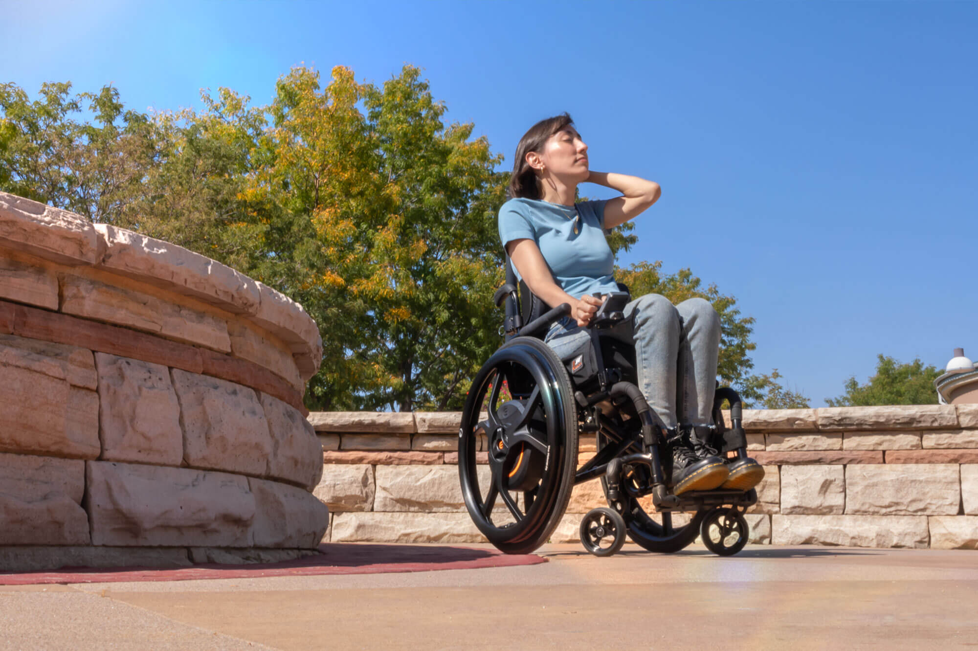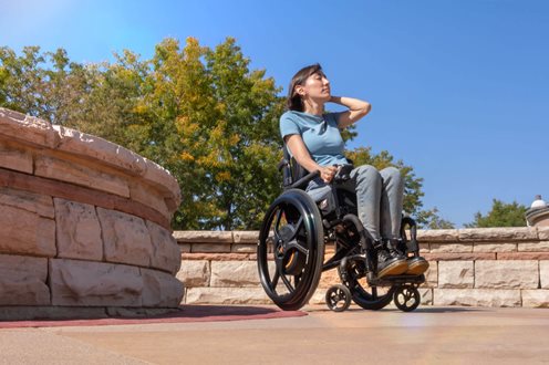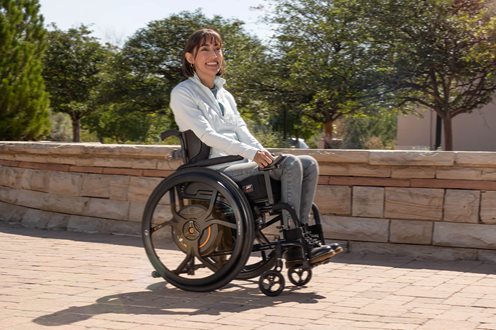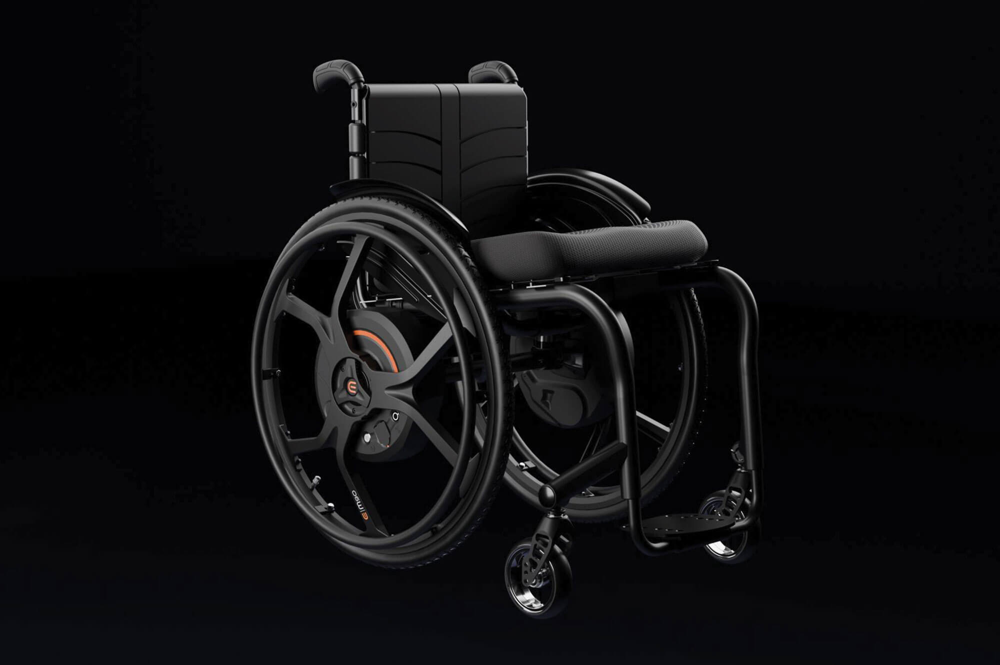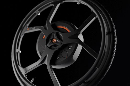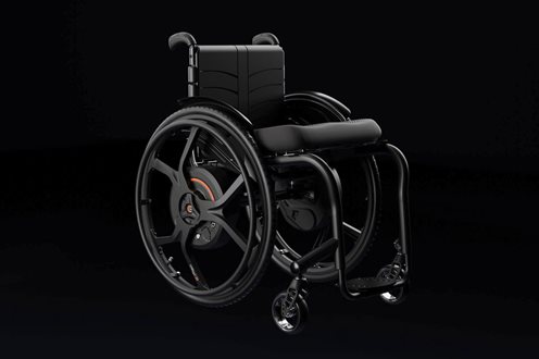 Montering og demontering er like enkelt som å ta av og på et bakhjul med hurtigaksel. Batterier og alle tekniske komponenter er diskret bygget inn i navet – uten at rullestolen blir bredere. Estetikk og brukervennlighet i perfekt harmoni.