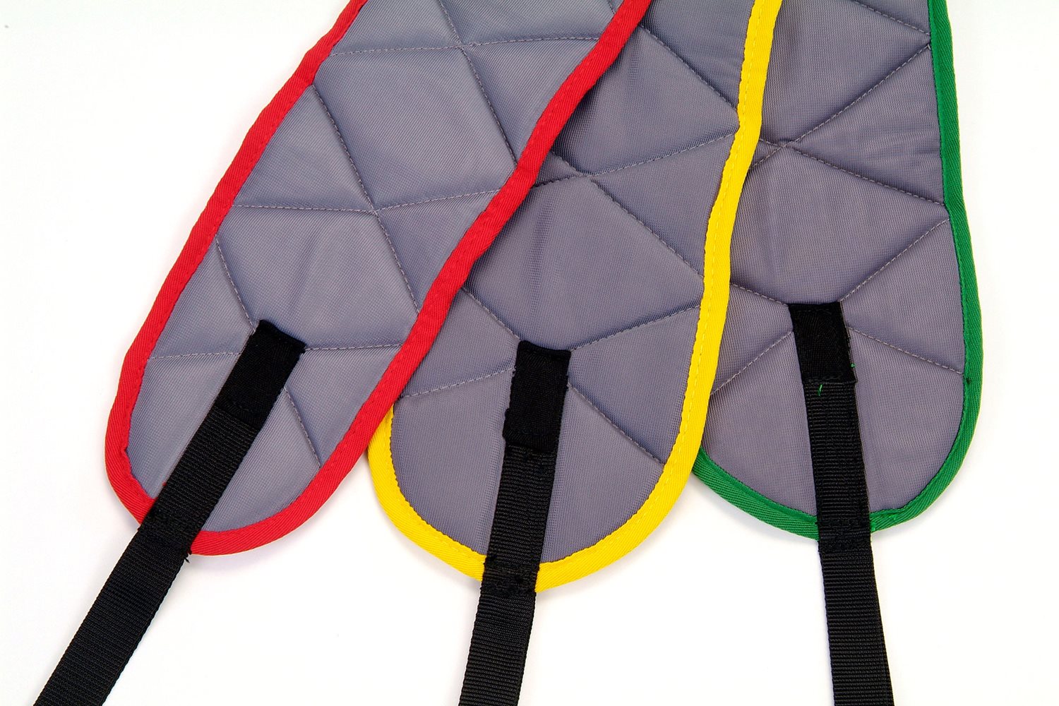 Hver størrelse har egen farge på kantbåndene: Brun: Barn/XS, Rød: Small, Gul: Medium, Grønn: large, Blå: XLarge.