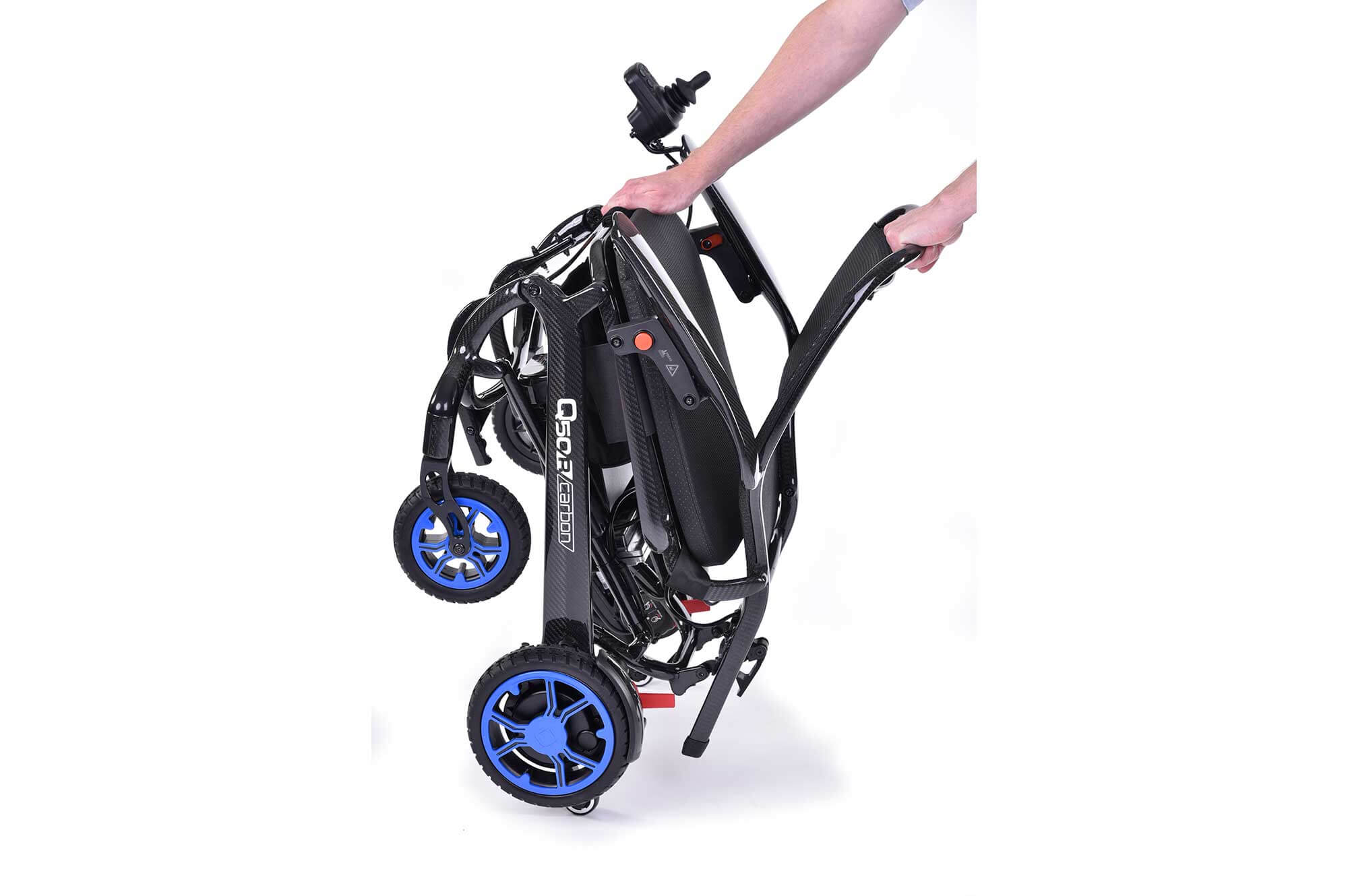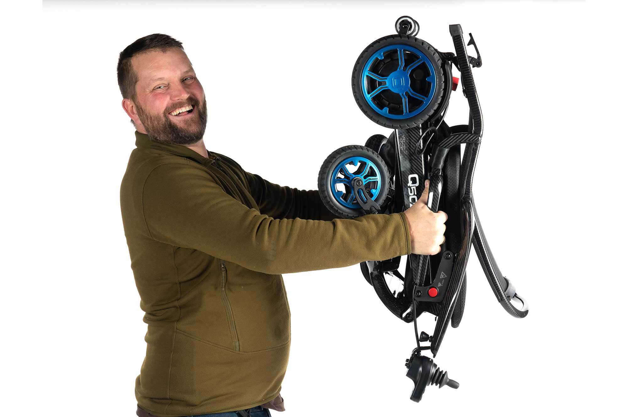 Reise på ferie uten din elektriske rullestol? Med den sammenleggbare Q50 R Carbon kan du likevel reise og ha friheten du ønsker. Stolen blir svært kompakt når sammenlagt (370 mm lengde x 570 mm bredde x 767 mm høyde). Svært praktisk for oppbevaring / lagring, å ta med på toget eller i bilen. Den er utrolog lett slik at du eller din ledsager kan løfte den inn og ut av bilen uten store anstrengelser. Når det kommer til å reise med fly er batteriene til denne stolen IATA-godkjent* for flytransport.