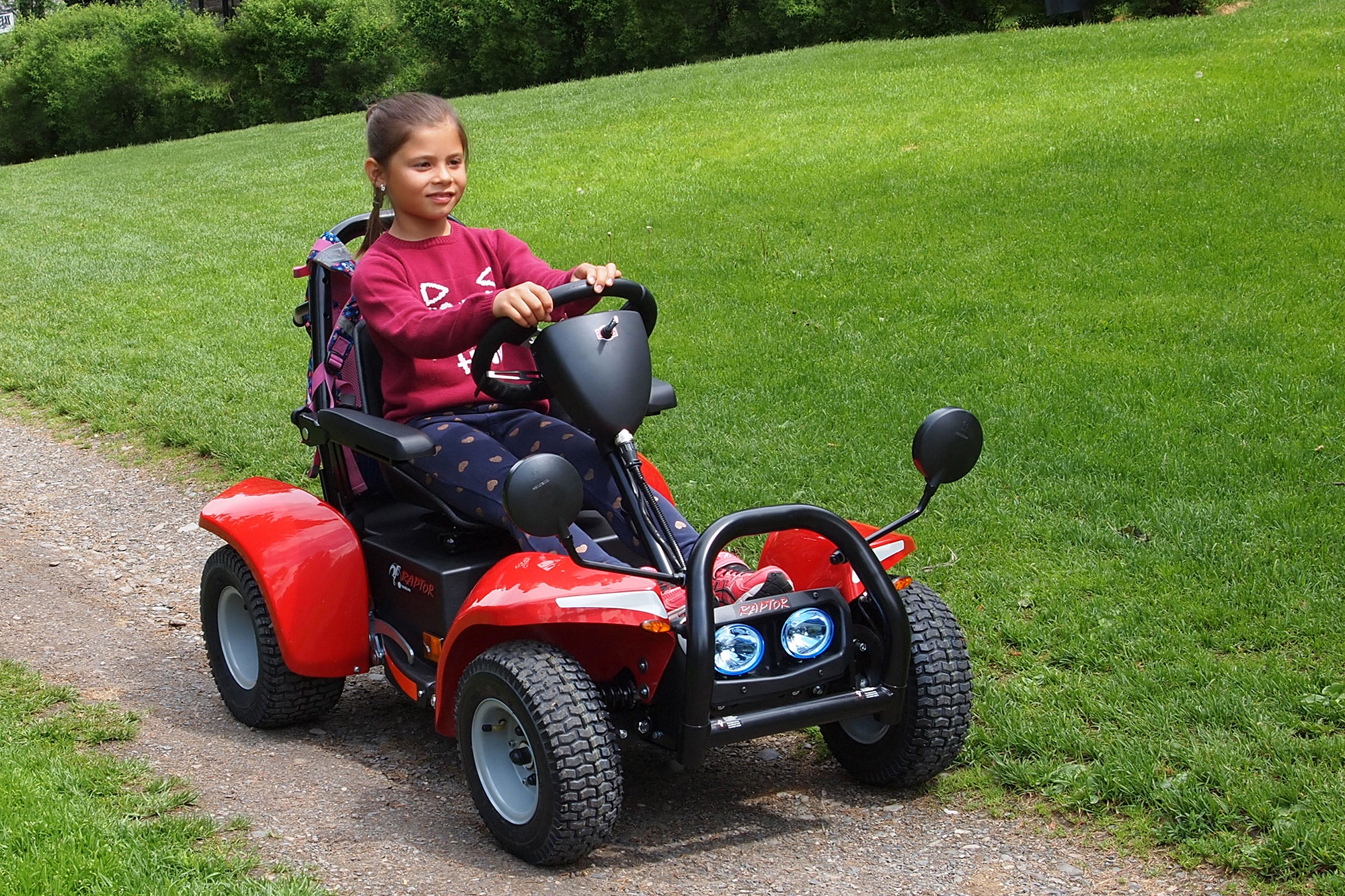 En elektrisk ute-rullestol med manuell styring for deg som er ung og ønsker å henge med vennegjengen. Raptor er det naturlige valget for skole- og fritidsaktiviteter utendørs. Et tøft utseende og gode funksjoner er en god match for lek og tilhørighet.