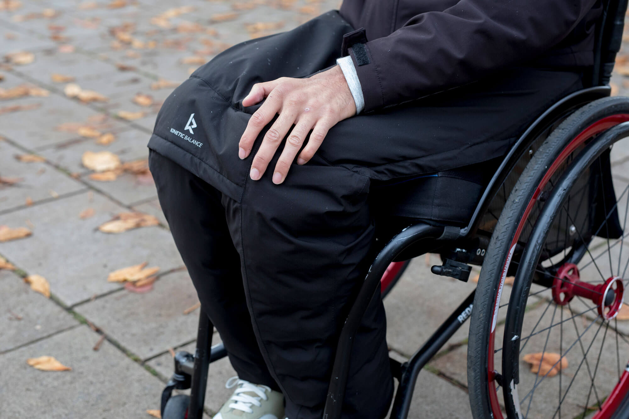 Raider holder deg varm og tørr på tur. Varmebuksen beskytter rullestolbrukere fra livet og ned til føttene, kompletteres med eget fottøy.