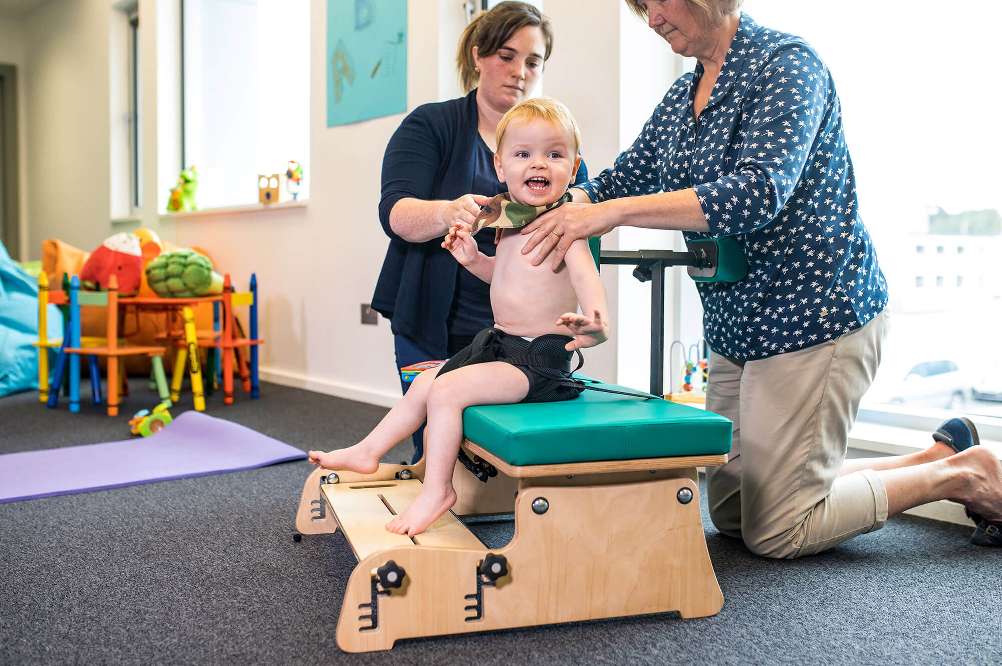 Utviklet for å fremme aktiv terapi for barn ved å støtte i en nøytral posisjon, og frigjøre hender.