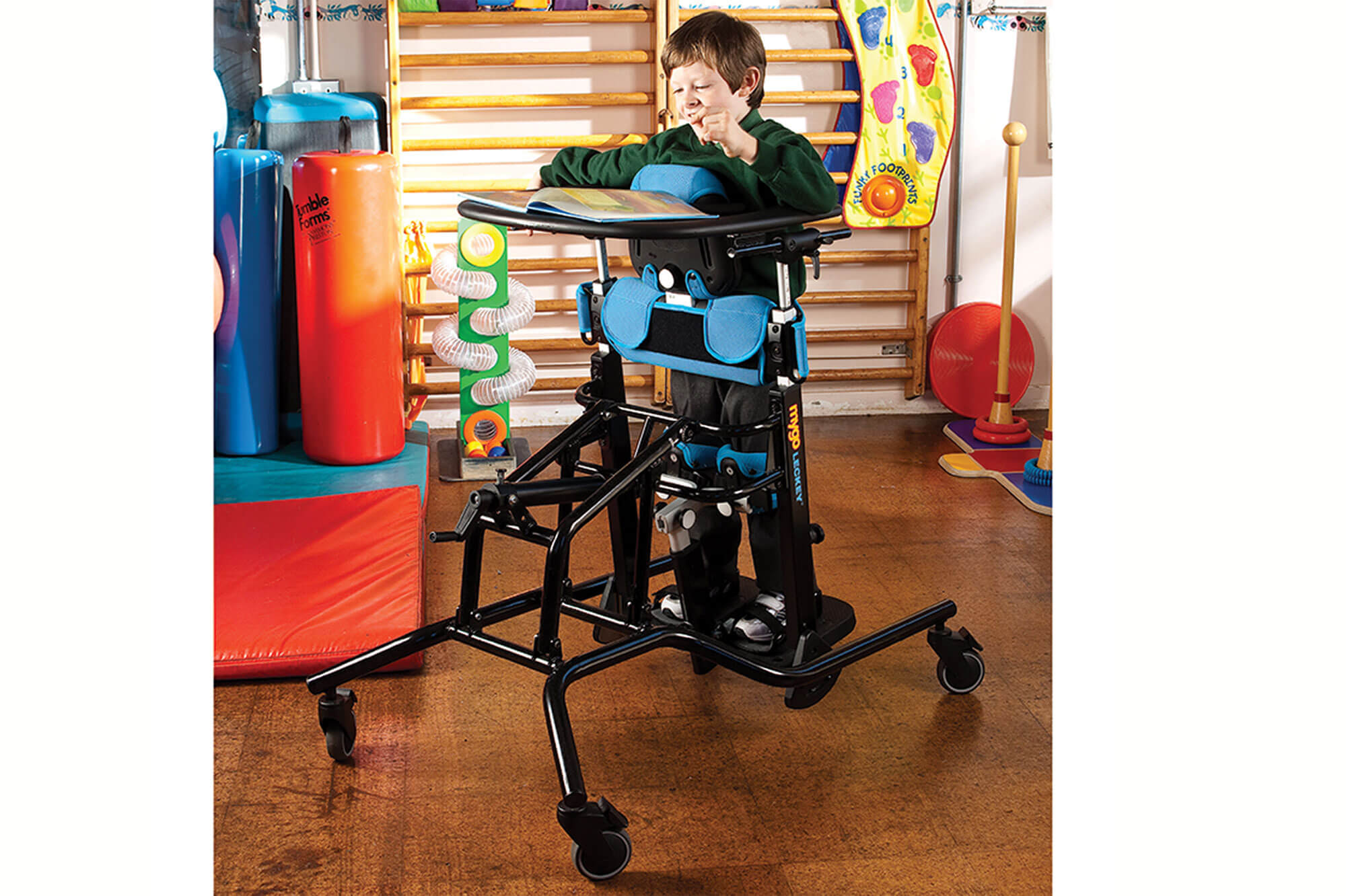 Mygo kan benyttes som frontalt eller dorsalt ståstativ og gir barna optimale muligheter til å stå uavhengig av hvilke utfordringer de har i forhold til posisjonering, for eksempel kontrakturer i hofte og knær.