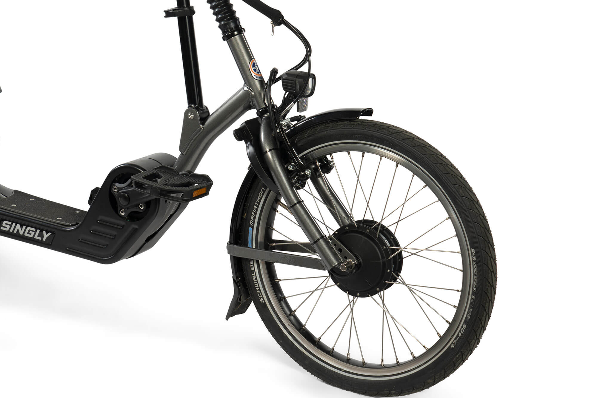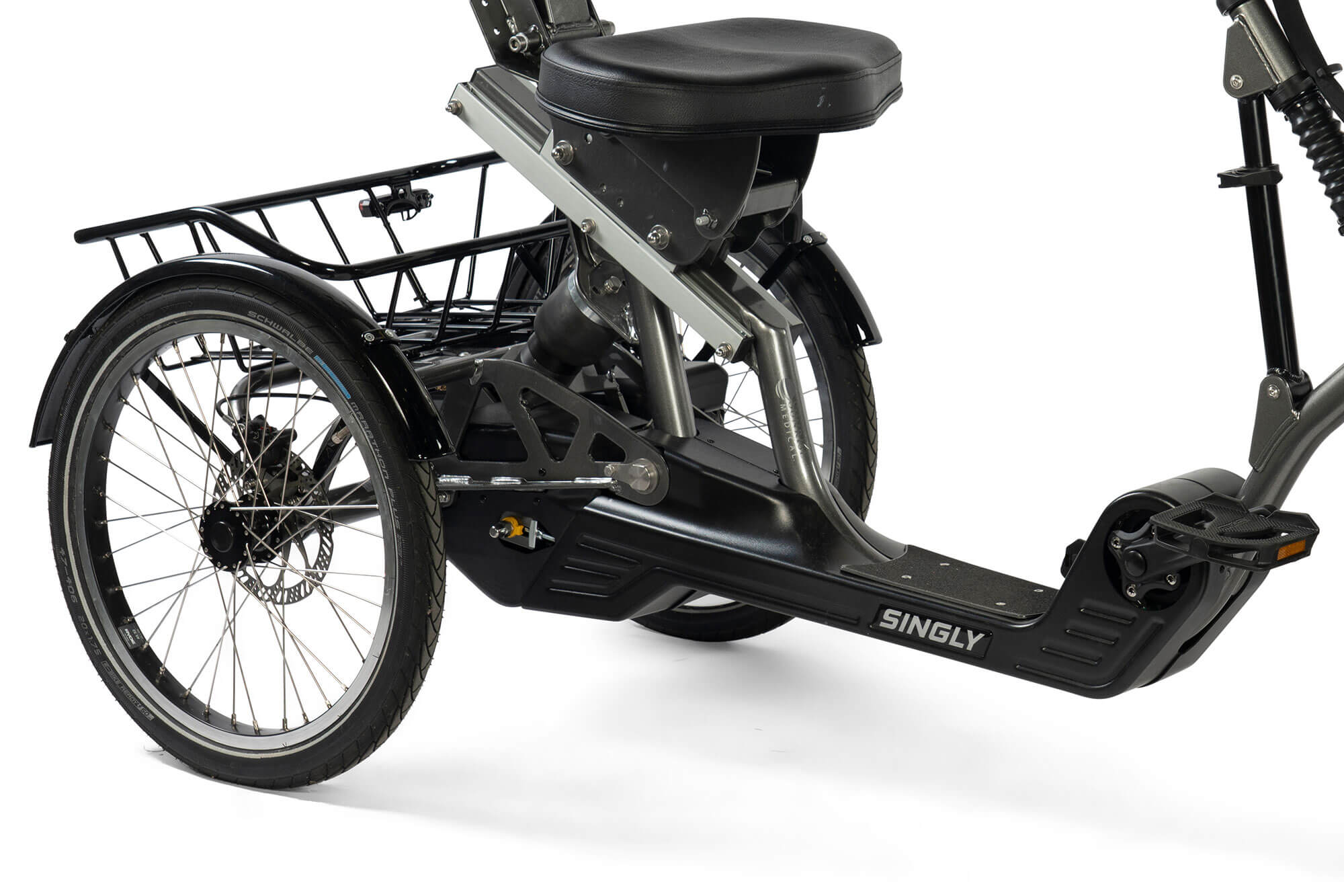 Singly Air E er en komfortabel 3-hjuling med oppgradert sete. Det komfortable setet har innstillingsmuligheter i høyde, legglengde og vinkel. Den innstillbare luftfjæringen over bakakselen bidrar til en mer komfortabel tur. Stor «platform» kombinert med svært lav innstigningshøyde gir enklere på og avstigning. Trenger du å frakte med deg noe, har Singly Air E en stor praktisk kurv.