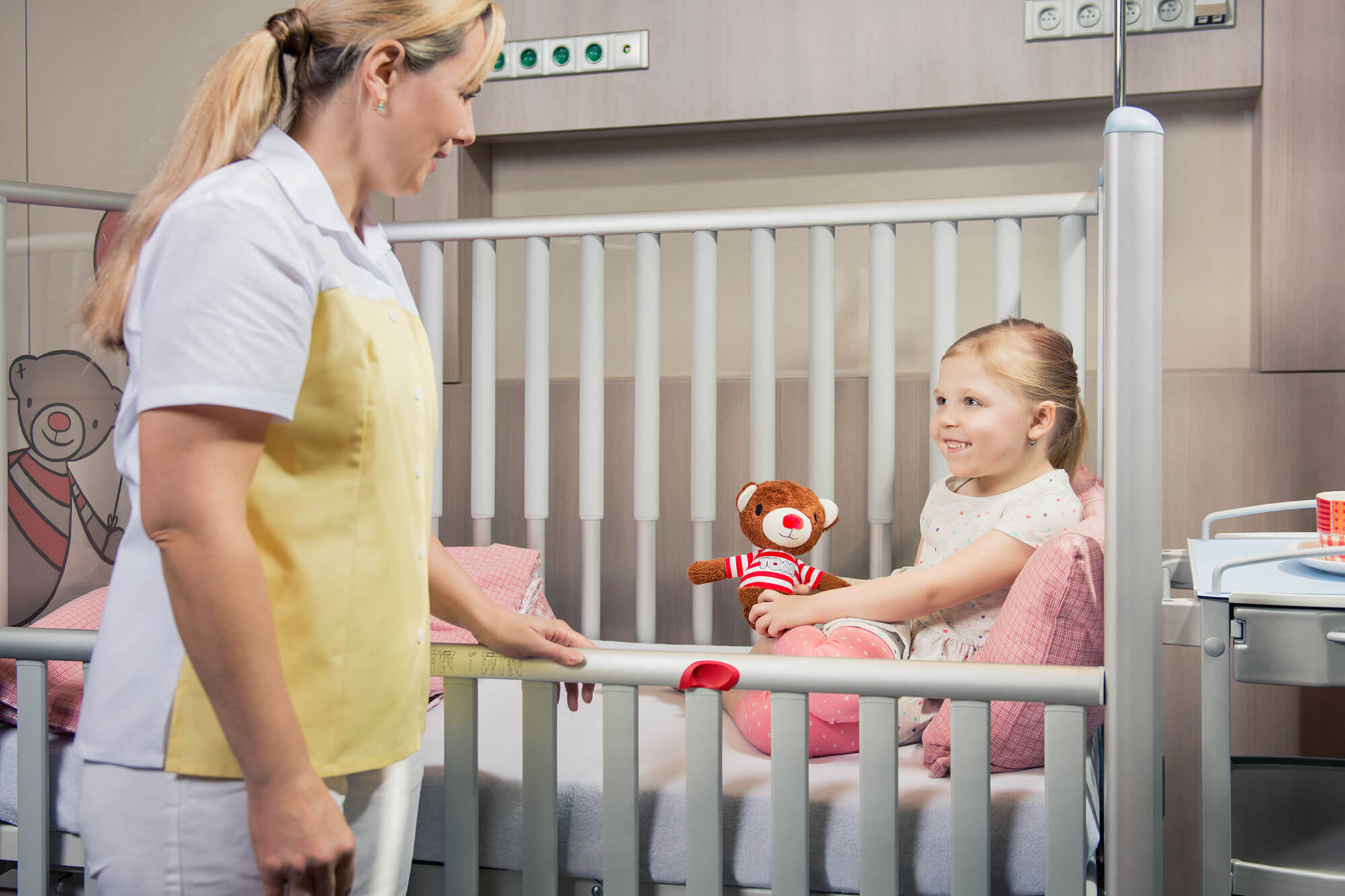 Den nye generasjonen sykehussenger for barn fra 6 måneder og oppover. Designet for maksimal sikkerhet, samtidig som den gir et tilfredsstillende arbeidsmiljø for pleierne. Den elektrisk stillbare gulvsengen møter disse kravene med et unikt konsept bestående av teleskopgrinder, løftesøyler og eksepsjonelle sikkerhetsparametre. For barn som står, sitter, ligger og beveger seg i sengen, gir den kraftige søylekonstruksjonen særdeles god stabilitet. Linet TOM 2 benyttes også ved intensivavdelinger.